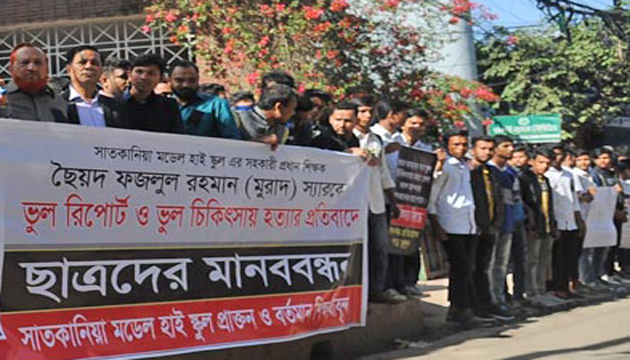 রোগ নির্ণয়কে কেন্দ্র করে মনগড়া প্রতিবেদনে ভুল চিকিৎসার শিকার সহকারী প্রধান শিক্ষক সৈয়দ ফজলুল রহমান মুরাদের মৃত্যুর জন্য দায়ী চিকিৎসকদের গ্রেফতারের দাবি জানিয়েছেন সাতকানিয়া মডেল হাইস্কুলের সাবেক ছাত্ররা।