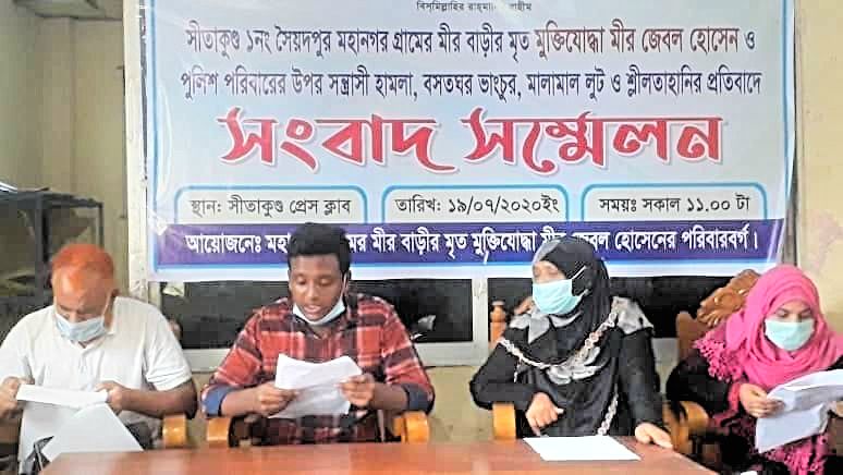 রবিবার (১৯ জুলাই) সীতাকুণ্ড প্রেসক্লাব কার্যালয়ে আয়োজিত সংবাদ সম্মেলনে লিখিত বক্তব্য পাঠ করেন ওই মুক্তিযোদ্ধার স্ত্রী রাহেলা আক্তার।