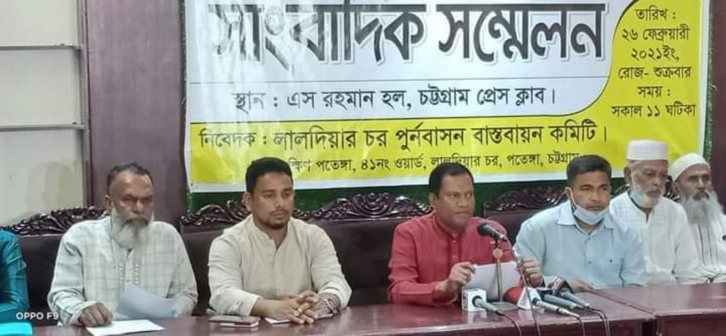 সংবাদ সম্মেলনে লালদিয়া চর পুনর্বাসন কমিটির আহ্বায়ক আলমগীর হাসান বলেন, ‘লালদিয়া চরে যদি আদি বাসিন্দাদের বাইরে কেউ এসে থাকে তাহলে তা বের হবে। ২০১৪ সালে লালদিয়ার চরের সি ব্লকে মাল্টিপারপাস টার্মিনাল করতে বন্দর উদ্যোগ নিয়ে তাদের সাথে যৌথ সার্ভে করা হয়। সেখানে ৪৫২ জনকে বন্দরই চিহ্নিত করেছিল। আমরা বলেছিলাম ৪৮২ জন। অল্প পার্থক্য। সেটা শুধু সি ব্লকে। এ ব্লকে ১৭০০ পরিবার থাকে। কোনো সার্ভে করা হয়নি। সার্ভে হলে পরিষ্কার হয়ে যাবে ৭২ সালে আমরা কোন পরিবারগুলো ছিলাম।’