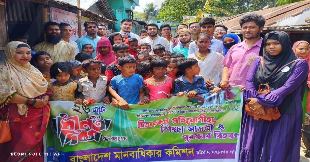 মহান স্বাধীনতা দিবস উপলক্ষে বাংলাদেশ মানবাধিকার কমিশন চট্টগ্রাম মহানগর দক্ষিণের উদ্যোগ হতদরিদ্র ও পথশিশুদের ইচ্ছা পূরণ স্কুলে চিত্রাংকন, শিক্ষা সামগ্রী ও পুরস্কার বিতরণী অনুষ্ঠান অনুষ্ঠিত হয়েছে।