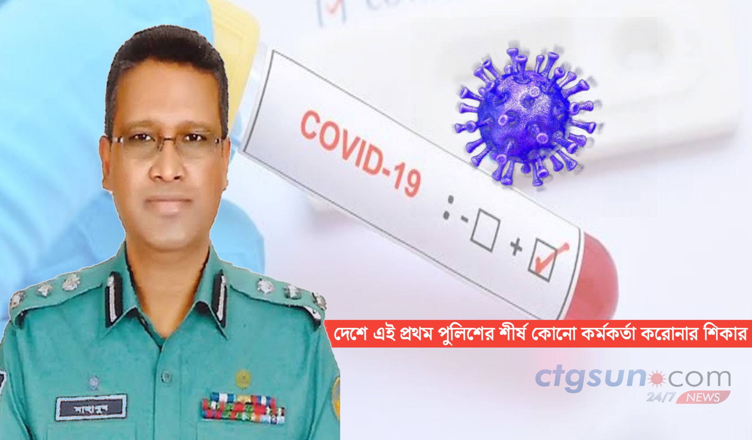 নিজস্ব প্রতিবেদক | আপডেট : ০৯ জুন, ২০২০ মঙ্গলবার ০১:০৯ এএম প্রাণঘাতী করোনাভাইরাসে আক্রান্ত হয়েছেন চট্টগ্রাম নগর পুলিশ কমিশনার মো. মাহাবুবর রহমান। সোমবার (৮ জুন) রাত সাড়ে ১২টার দিকে তিনি নিজেই বিষয়টি নিশ্চিত করেন। দেশে এই প্রথম পুলিশের শীর্ষ কোনো