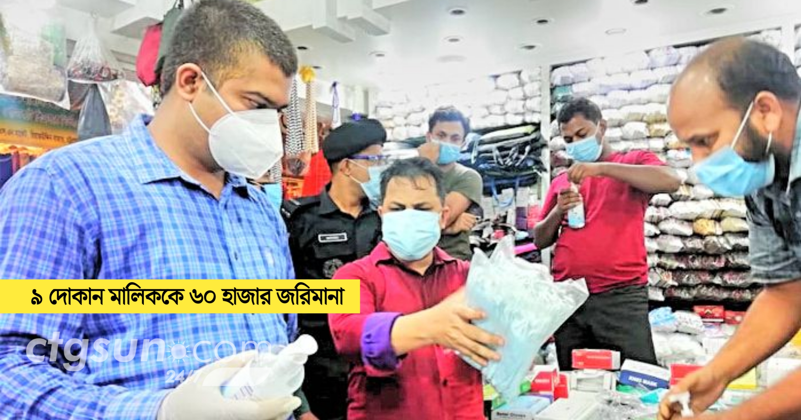 নকল হ্যান্ডস্যানিটাইজার, মাস্ক ও পিপিই সংরক্ষণ ও বিক্রির দায়ে নগরের গোলাম রসুল মার্কেটের ৯ দোকানিকে জরিমানা করেছে ভ্রাম্যমাণ আদালত। এসময় তাঁদের ৬০ হাজার টাকা অর্থদণ্ড দেয়া হয় এবং নকল সুরক্ষা সামগ্রী গুলো জব্দ করে ধ্বংস করা হয়। সোমবার (২০ জুলাই)