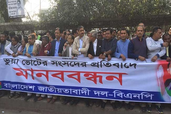 অনলাইন | সিটিজিসান.কম ঢাকা | ৩০ জানুয়ারি ২০১৯, বুধবার ১২:১৫ পিএম| একাদশ জাতীয় সংসদ নির্বাচনের একমাস পর মাঠের কর্মসূচি ঘোষণা করেছে বিএনপি। সংসদে আজকের অনুষ্ঠিতব্য প্রথম অধিবেশনকে ‘ভুয়া’ অভিহিত করে এর প্রতিবাদে ঢাকায় এক ঘন্টার মানববন্ধন কর্মসূচি পালন করছে দলটি।