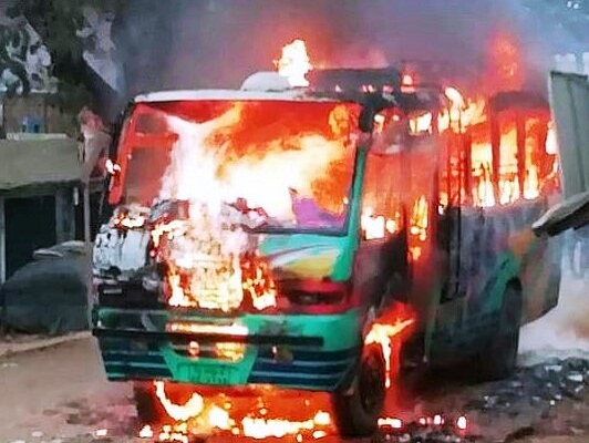বাঁশখালীতে গ্যাসের ট্যাঙ্ক বিস্ফোরিত হয়ে চলন্ত বাসে আগুন