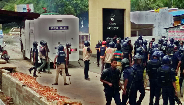 স্টাফ করেসপন্ডেন্ট | সিটিজিসান.কম চট্টগ্রাম বিশ্ববিদ্যালয় | ০৭ এপ্রিল ২০১৯, রবিবার ০২:০০ পিএম | মামলা প্রত্যাহার ও নিঃশর্ত মুক্তির দাবিতে সকাল থেকে চলা অনির্দিষ্টকালে ধর্মঘটে লাঠিচার্জ করে ছাত্রদের অবরোধ ছত্রবঙ্গ করে দিয়েছে পুলিশ। এসময় পুলিশ-ছাত্রদের মাঝে ধাওয়া-পাল্টা ধাওয়ার ঘটনা ঘটেছে।